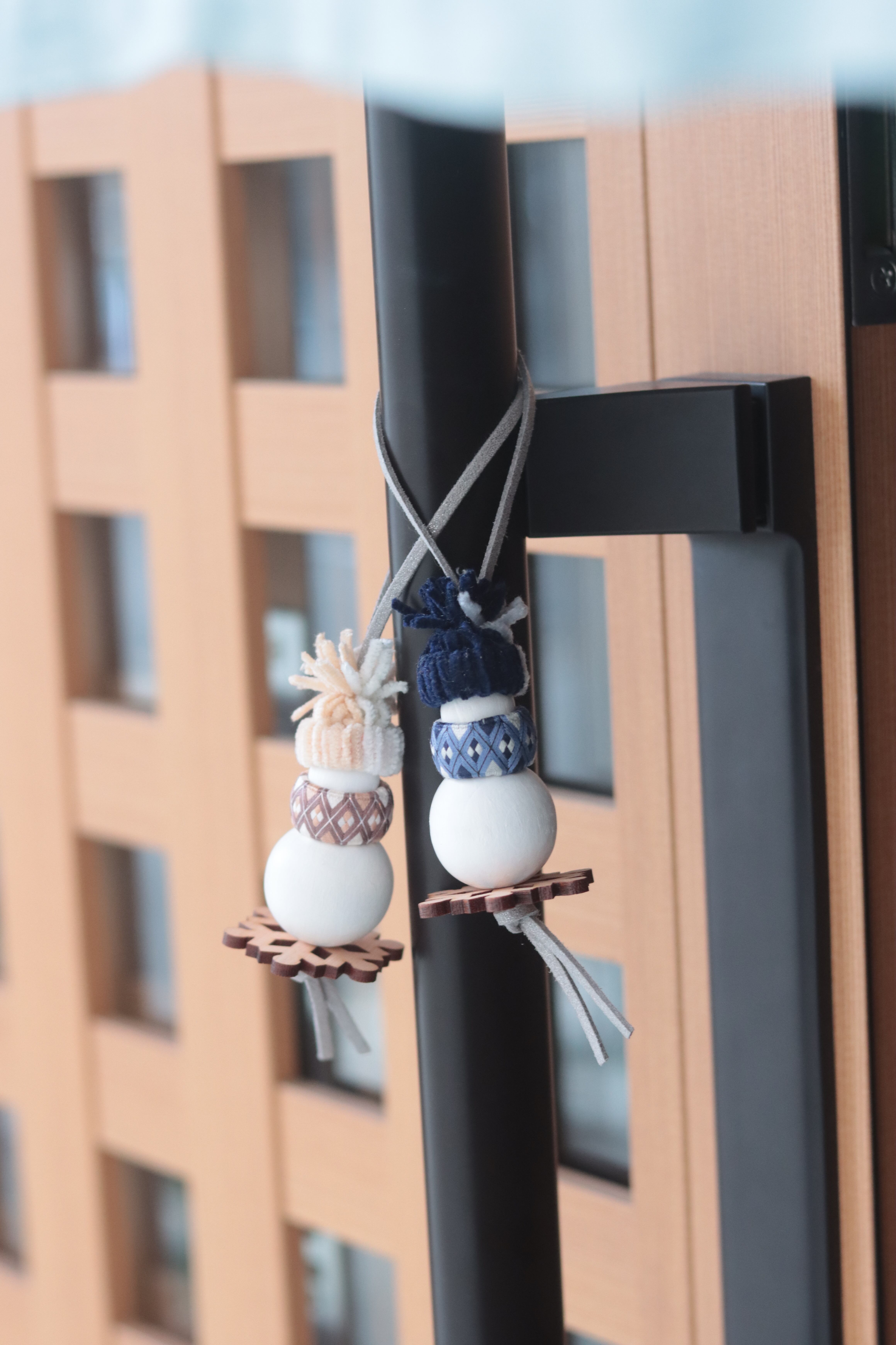 ・<雪玉の材料>雪玉大、雪玉小、スエード紐、雪型の木、中棒
